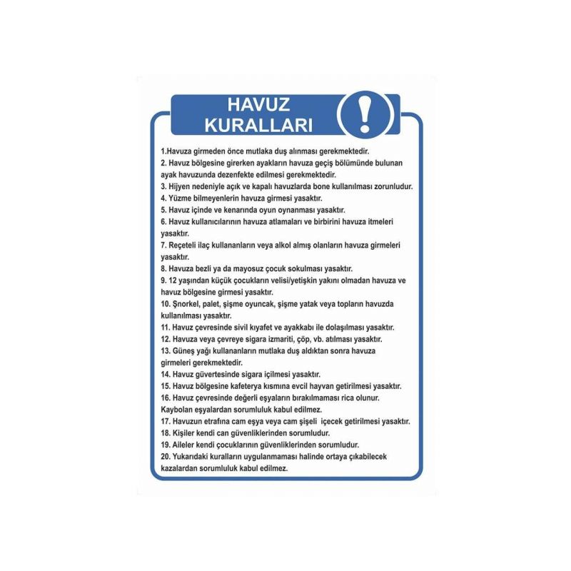 Havuz Güvenlik Kuralları Levha Seti - 1 ( 100x110 cm )